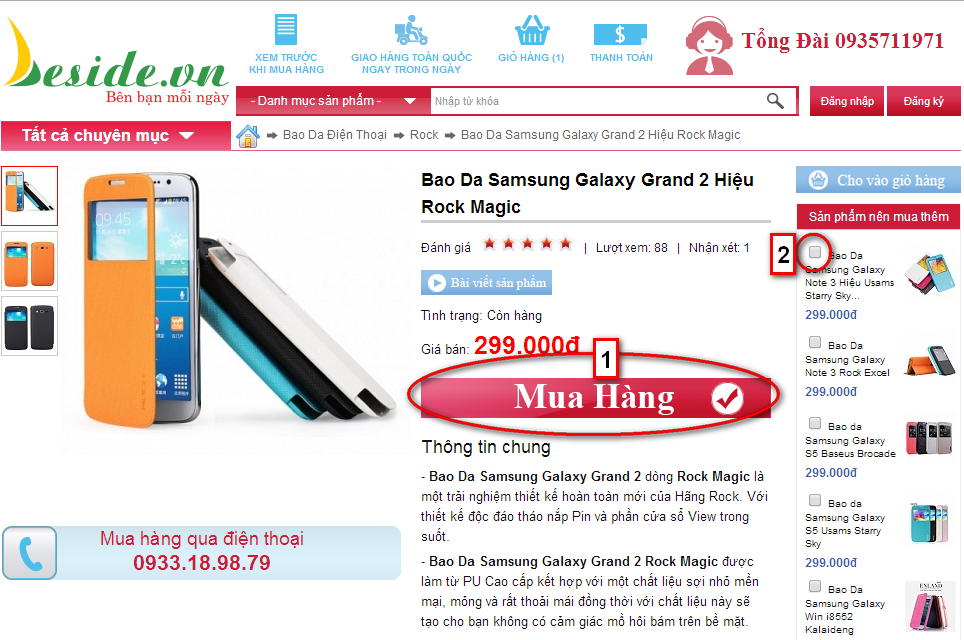 1. Vào trang Chí Tiết Sản Phẩm để mua hàng: