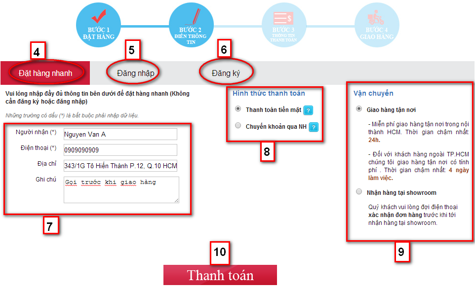 (4) Nếu quý khách muốn mua hàng nhanh chóng thì ở tab Đặt Hàng Nhanh để đặt hàng.
